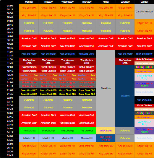 Source : www.reddit.comAdult Swim’s Schedule! by BobCardsForever on DeviantArt
